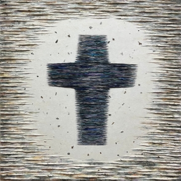그녀는 십자가와 빛을 표현하기 위해 한지를 찢고 접고 돌돌 말아 붙이고 표면을 입체화하여 부조적인 효과로 형상화했다. 한때 천으로 하는 염색공예작품 활동도 했었지만 언제부터인가 한지공예에 주력했는데 특히 이번 십자가전을 준비하며 한지 조각들이 가늘게 서로 맞닿아 물결치는 선의 부드러움이 십자가가 품고 있는 사랑과 소망을 담아내기에 적합하다고 생각했다. 그러면서도 꿋꿋한 강인함이 느껴지는 한지의 또 다른 속성이 생명력으로 차올랐다. 공의와 사랑, 고난과 부활이라는 상반된 개념의 합일화가 빛을 탄생시키듯 작품에서도 고난의 십자가를 어둠을 밝히는 생명의 빛으로 표현했다.