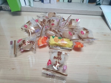 어르신이 주시는 사탕은 호박엿 사탕이다.
