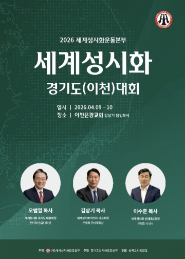 2026 세계성시화운동본부가 주최하고, 경기도성시화운동본부(대표회장 오범열 목사·본대회 총괄본부장, 이천시 대표회장·본 대회 준비대회장 김상기 목사)가 주관한 경기도(이천)대회가 4월 9일부터 10일까지 이천은광교회(김상기 목사 시무)에서 열렸다.